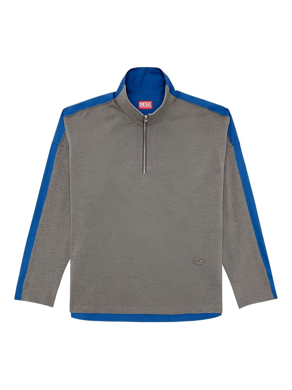 half-zip long-sleeves sweater Highlights - Grey - Funnel neck - Long sleeves - Zip fastening - Panelled design - Logo detail Imported Composition Polyester 58%, Cotton 42% Washing instructions Read Manufacturer Guidelines