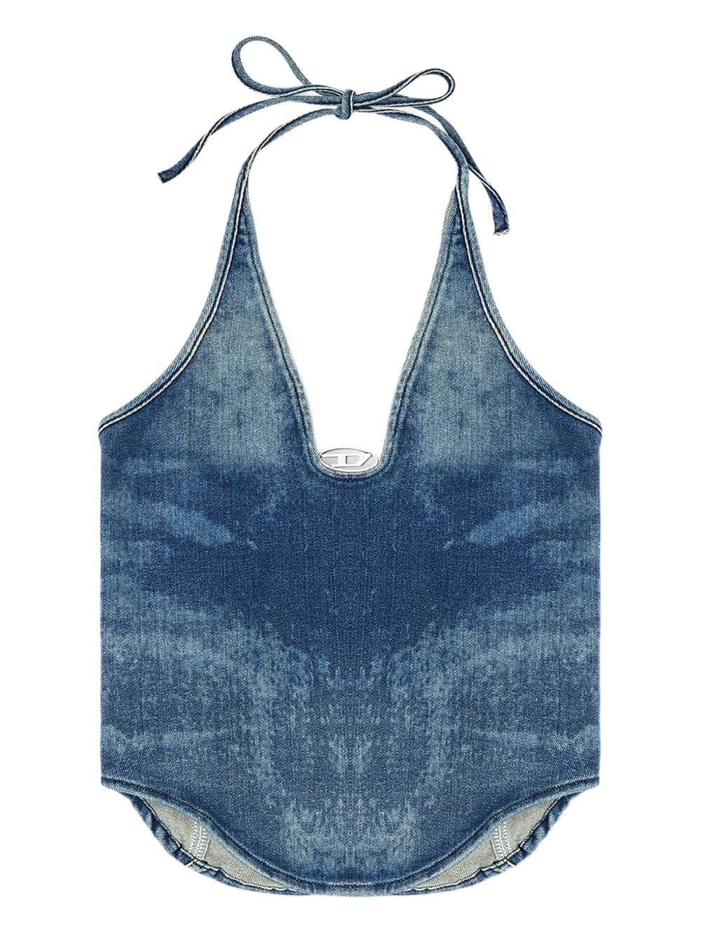 halter-neck denim top