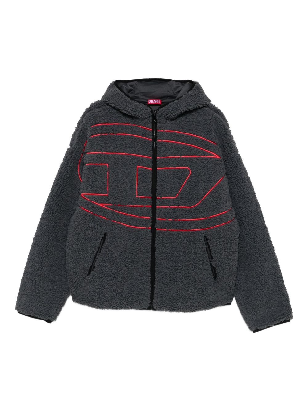 hooded logo-detail jacket Highlights - Grey - Teddy-fleece texture - Embroidered logo - Front zip-fastening - Long sleeves - Two pockets Imported Composition Outer: Polyester 100% Lining: Polyester 100% SIZE & FIT Model measurements Height 6 ft 0 in(1.84 m) Bust/Chest 37.79 in(96 cm) Hips 37 in(94 cm) Waist 31.49 in(80 cm) Washing instructions Machine Wash