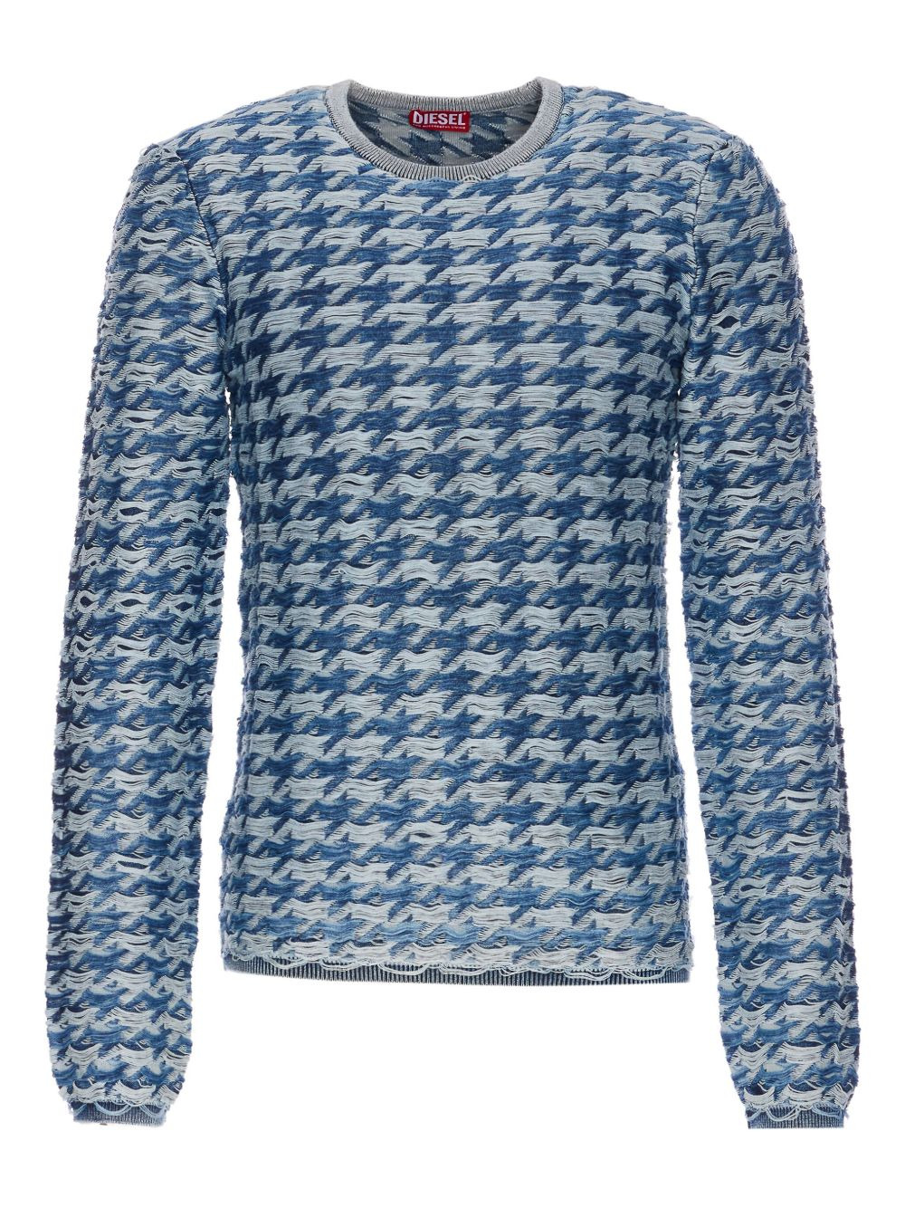 houndstooth crew-neck sweater Highlights - Blue - Houndstooth pattern - Crew neck - Long sleeves - Textured knit - Cotton Made in Italy Composition Cotton 100% Washing instructions Read Manufacturer Guidelines