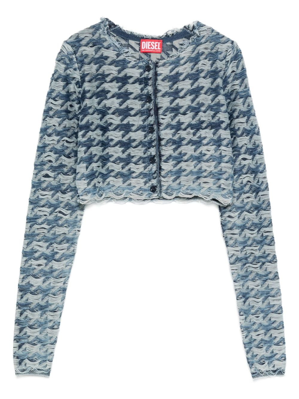 houndstooth-pattern cardigan Highlights - Blue - Houndstooth pattern - Cropped hem - Long sleeves - Button fastening - Frayed edges Made in Italy Composition Cotton 100% SIZE & FIT Model measurements Height 5 ft 11 in(1.8 m) Bust/Chest 31.49 in(80 cm) Hips 36.61 in(93 cm) Waist 24.4 in(62 cm) Washing instructions Read Manufacturer Guidelines