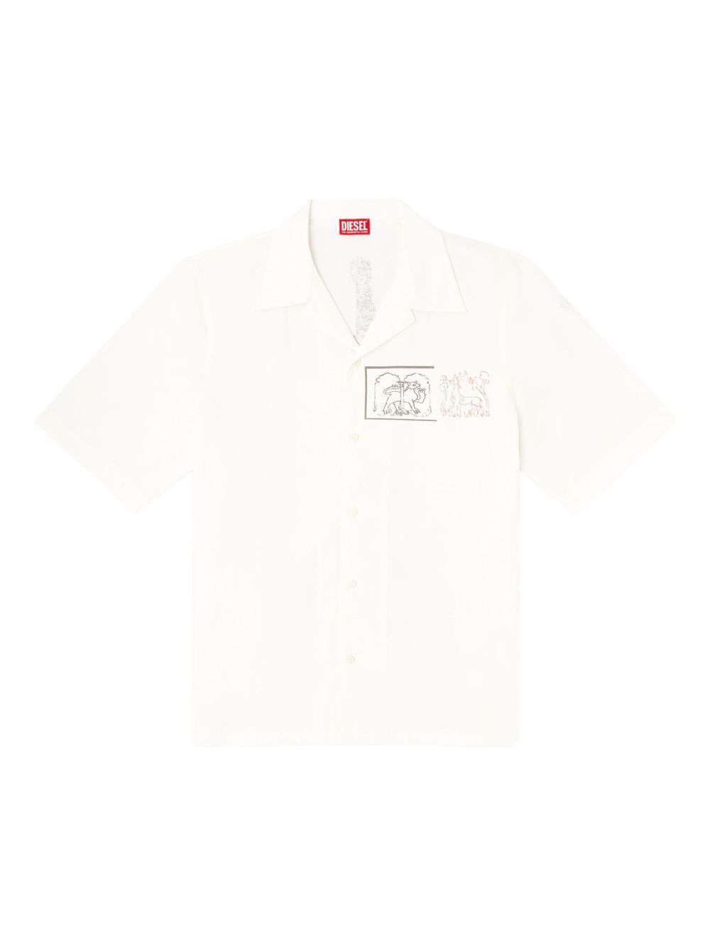illustrated short-sleeve shirt Highlights - White - Button fastening - Short sleeves - Classic collar - Straight hem Imported Composition Cotton 100% Washing instructions Read Manufacturer Guidelines