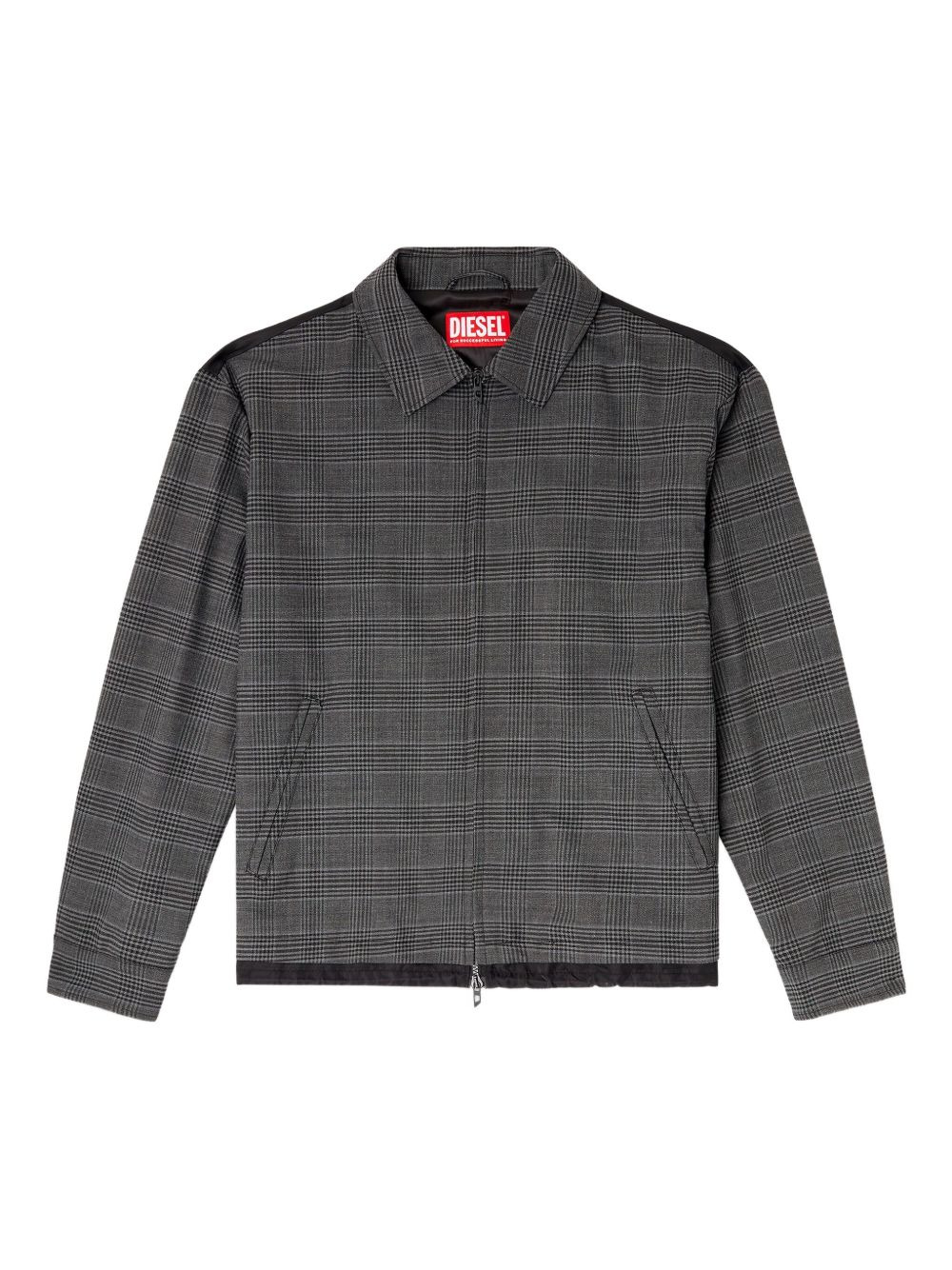 J-Ting checked zip-up shirt jacket Highlights - Grey - Checked pattern - Zip fastening - Collared neckline - Long sleeves - Black-panel insert Imported Composition Polyamide 100%, Polyester 54%, Virgin Wool 44% Washing instructions Read Manufacturer Guidelines