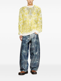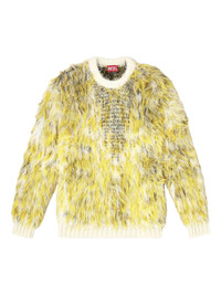 fluffy jacquard-knit sweater Highlights - Yellow - Fluffy texture - Jacquard knit - Mottled pattern - Crew neck - Long sleeves Made in Italy Composition Polyamide 86%, Acrylic 8%, Mohair 6% Washing instructions Read Manufacturer Guidelines
