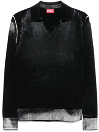 K-Lorenzo polo top Highlights - Black - Cotton - Knitted construction - Faded effect - Polo collar - Split neck - Long sleeves - Intarsia-knit logo - Ribbed cuffs and hem Imported Composition Cotton 100% SIZE & FIT Model measurements Height 6 ft 1 in(1.85 m) Bust/Chest 35.82 in(91 cm) Hips 37.79 in(96 cm) Waist 29.13 in(74 cm) FittingInformation Designed for a regular fit, offering a comfortable loose fit throughout the body The ribbed hem offers a close, comfortable fit Made with a midweight knit, this piece offers some stretch