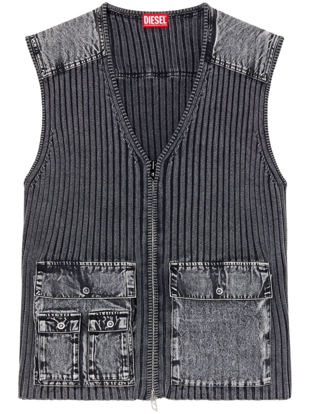 K-Margie vest Highlights - Dark grey - Cotton - Ribbed knit - Zip fastening - V-neck - Patch detail - Sleeveless - Two front cargo pockets - Straight hem Imported Composition Cotton 100%