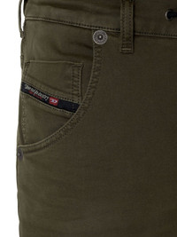 2030 D-Krooley 0670M jeans Highlights - Krooley tapered-leg jeans from diesel featuring khaki, cotton blend, slim cut, mid-rise, belt loops, drawstring waist, front button and zip fastening and classic five pockets. . Imported Composition Cotton 90%, Polyester 8%, Spandex/Elastane 2% SIZE & FIT Model measurements Height 6 ft 1 in(1.85 m) Bust/Chest 35.82 in(91 cm) Hips 37.79 in(96 cm) Waist 29.13 in(74 cm) FittingInformation This piece fits true to size. We recommend you get your regular size Cut for a slim fit Made with a mid-weight stretch fabric Washing instructions Machine Wash