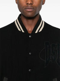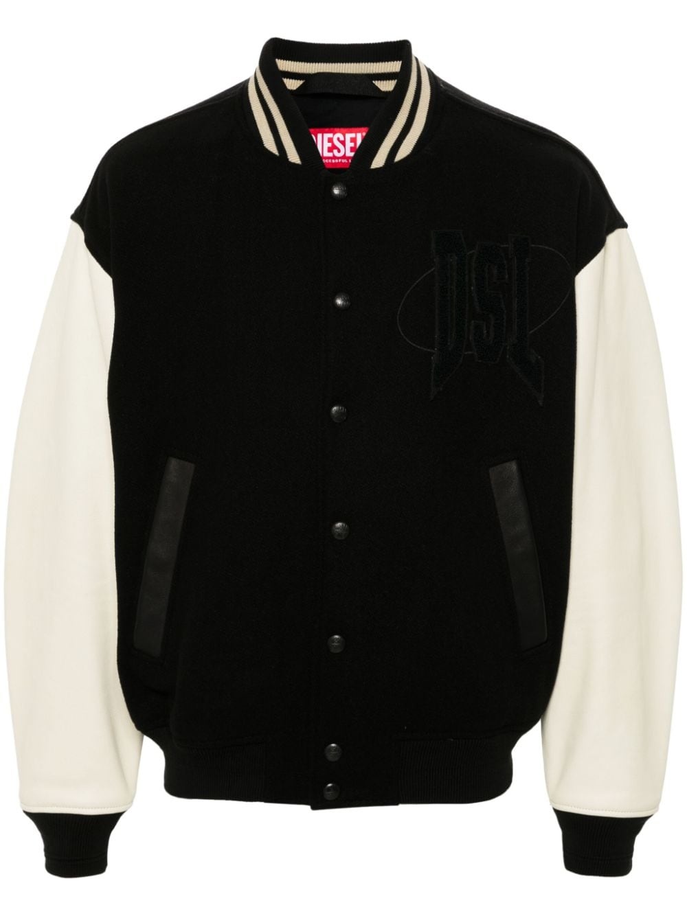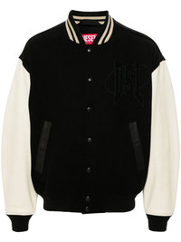 L-Nyman bomber jacket Highlights - Black/white - Wool blend - Leather trim - Colour-block panelled design - Logo patch at the chest - Ribbed band collar - Logo-engraved buttons - Front press-stud fastening - Drop shoulder - Long sleeves - Ribbed cuffs and hem - Two side stud-fastening pockets - Internal stud fastening pocket - Full lining Imported Composition Calf Leather 100%, Cotton 95%, Wool 81%, Polyamide 19%, Elastane 5% SIZE & FIT Model measurements Height 6 ft 2 in(1.88 m) Bust/Chest 36.61 in(93 cm) Hips 35.82 in(91 cm) Waist 27.95 in(71 cm) FittingInformation Designed to be unstructured, offering a loose fit throughout The ribbed hem offers a close, comfortable fit Made from a midweight non-stretch fabric This piece fits true to size – take your usual size