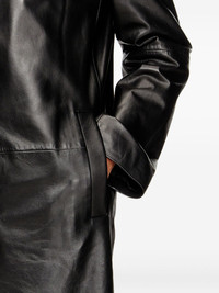 Lancelot leather coat Highlights - Black - Sheepskin material - Pointed collar - Long sleeves - Side welt pockets - Concealed front fastening Imported Composition Sheep Skin/Shearling 100% Washing instructions Read Manufacturer Guidelines