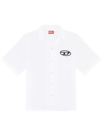 logo embroidered bowling shirt Highlights - White - Organic cotton - Poplin texture - Spread collar - Embroidered logo at the chest - Button fastening - Short sleeves - Straight hem Imported Composition Organic Cotton 100%