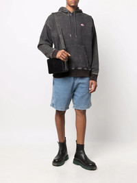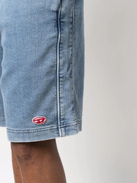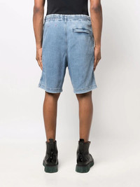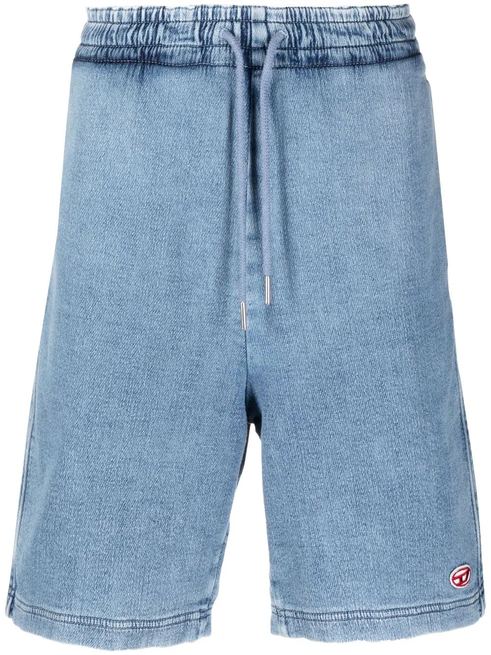 logo-patch denim shorts Highlights - Blue - Stretch-cotton - Logo patch to the side - Elasticated drawstring waistband - Two side inset pockets - Rear welt pocket - Straight leg - Knee-length Imported Composition Cotton 98%, Spandex/Elastane 2% SIZE & FIT Model measurements Height 6 ft 1 in(1.85 m) Bust/Chest 33.46 in(85 cm) Hips 38.18 in(97 cm) Waist 31.49 in(80 cm) FittingInformation This piece fits true to size. We recommend you get your regular size Designed for a slim fit at the waist and loose over the leg Made with a mid-weight stretch fabric Washing instructions Machine Wash