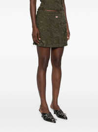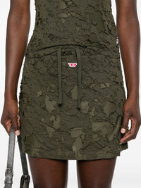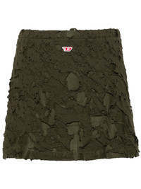 logo-patch distressed mini skirt Highlights - Olive green - Cotton - Jersey texture - Distressed effect - Logo patch to the front - Thigh-length - Straight hem - Full lining - Elasticated waistband Imported Composition Lining: Polyester 96%, Elastane 4% Outer: Cotton 100% SIZE & FIT Model measurements Height 5 ft 10 in(1.77 m) Bust/Chest 32.28 in(82 cm) Hips 35.03 in(89 cm) Waist 25.19 in(64 cm) FittingInformation This mini-length skirt is intended to be worn just below the waist The elasticated waist allows for a comfortable fit Made from a midweight stretch fabric, this piece offers elasticity and flexibility when worn This piece fits true to size – take your usual size Washing instructions Hand Wash