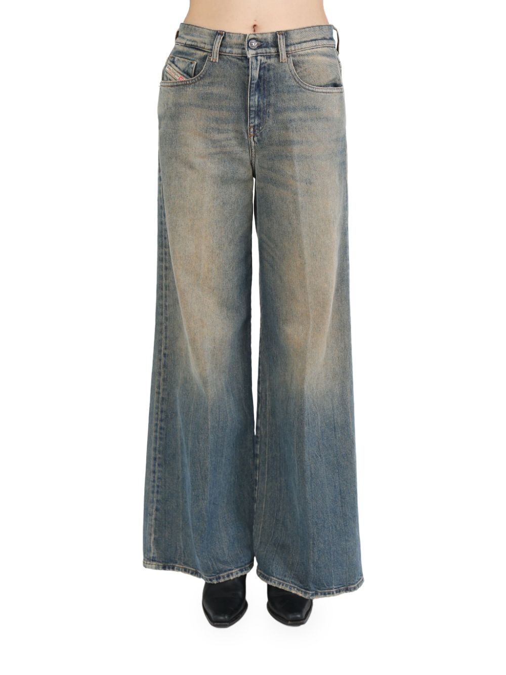 logo-patch wide-leg jeans Highlights - Powder blue - Cotton blend - Stretch-design - Washed denim - Logo patch to the rear - Front button fastening - Belt loops - Classic five pockets - Wide leg Made in Italy Composition Cotton 79%, Hemp 20%, Elastane 1% Washing instructions Read Manufacturer Guidelines