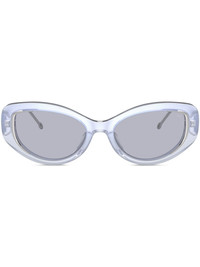 logo-plaque cat-eye sunglasses Highlights - Blue-grey - Acetate - Metal - Cat-eye frame - Blue tinted lenses - Silver-tone - Straight arms - Curved tips - These glasses come with a protective case. Imported Composition Acetate 50%, Metal (Other) 50% SIZE & FIT Measurement Arm Length 5.51 in(14 cm) Bridge Width 0.7 in(1.8 cm) Lens Diameter 2.12 in(5.4 cm)