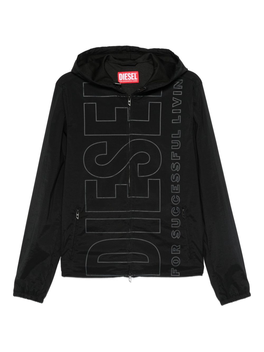 logo-print hooded jacket Highlights - Black - Hooded neckline - Front zip fastening - Long sleeves - Logo print - Side zip-fastening pockets Imported Composition Polyamide 95%, Elastane 5% SIZE & FIT Model measurements Height 6 ft 0 in(1.84 m) Bust/Chest 35.82 in(91 cm) Hips 37 in(94 cm) Waist 28.34 in(72 cm) Washing instructions Read Manufacturer Guidelines