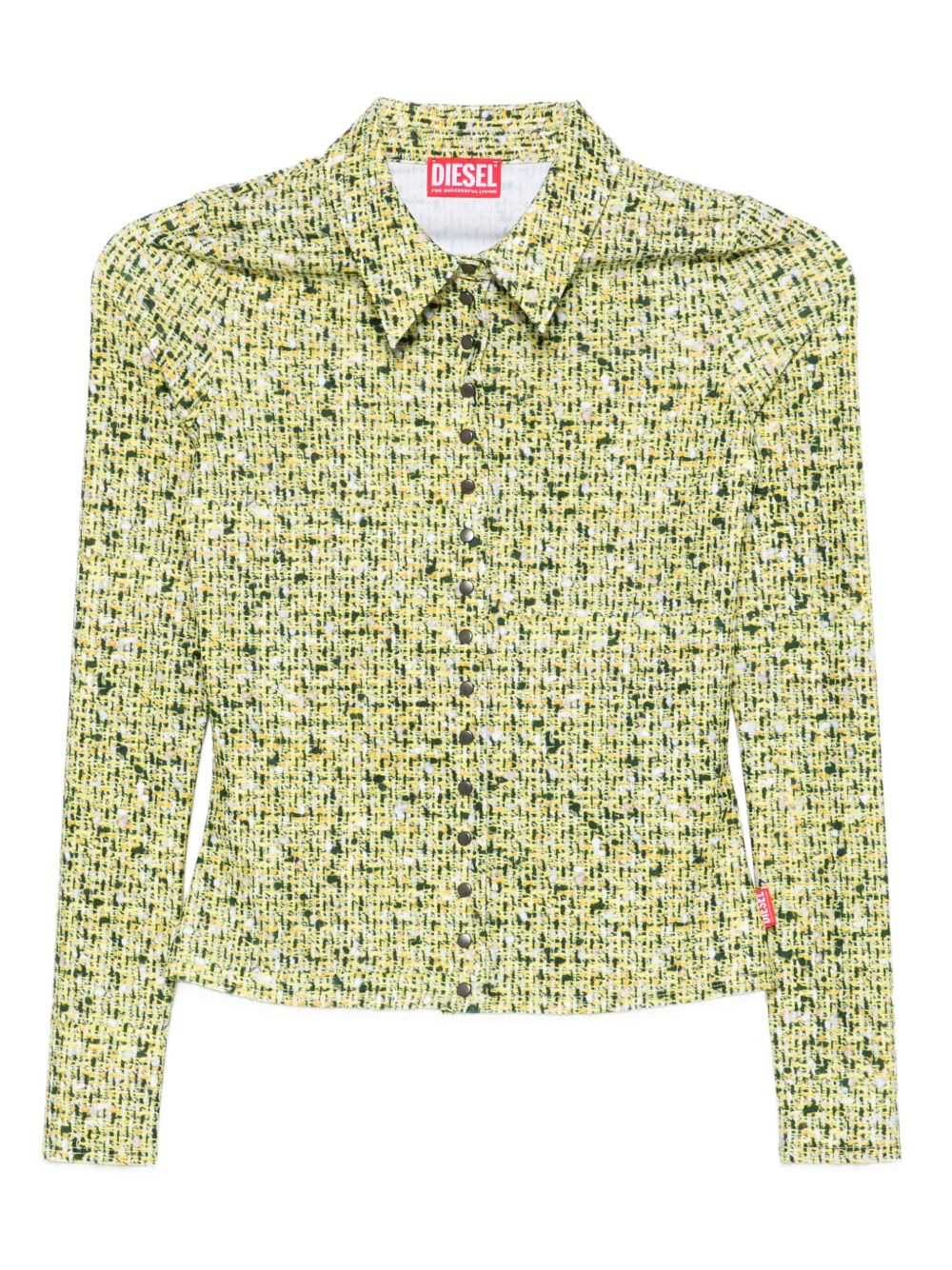 long-sleeve patterned top Highlights - Green - Button fastening - Collared neck - Long sleeves Imported Composition Polyamide 78%, Elastane 22% Washing instructions Machine Wash