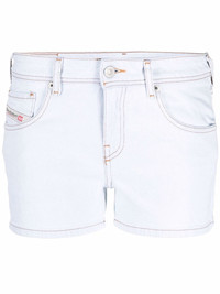 low-rise light-wash shorts blue cotton-blend low-rise front button and zip fastening slip pockets to the sides belt loops Imported Composition Cotton 89%, Polyester 10%, Spandex/Elastane 1% SIZE & FIT Model measurements Height 5 ft 9 in(1.76 m) Bust/Chest 33.07 in(84 cm) Hips 34.64 in(88 cm) Waist 25.59 in(65 cm) FittingInformation This piece fits true to size. We recommend you get your regular size Cut for a close fit Made with a mid-weight stretch fabric Washing instructions Machine Wash