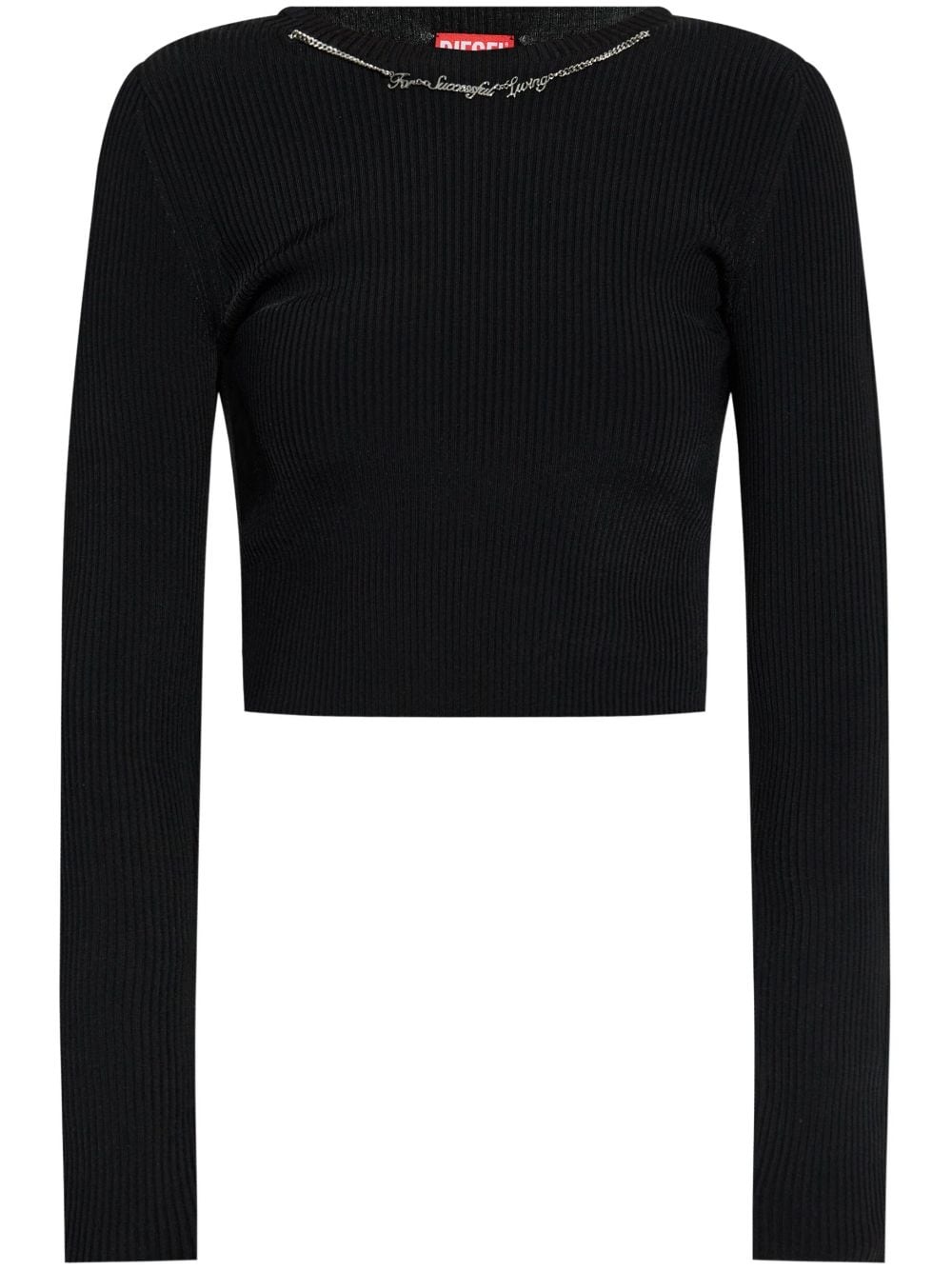 M-ALEA top Highlights - Black - Ribbed knit - Long sleeves - Crew neck - Cropped Imported Composition Viscose 75%, Polyamide 25%
