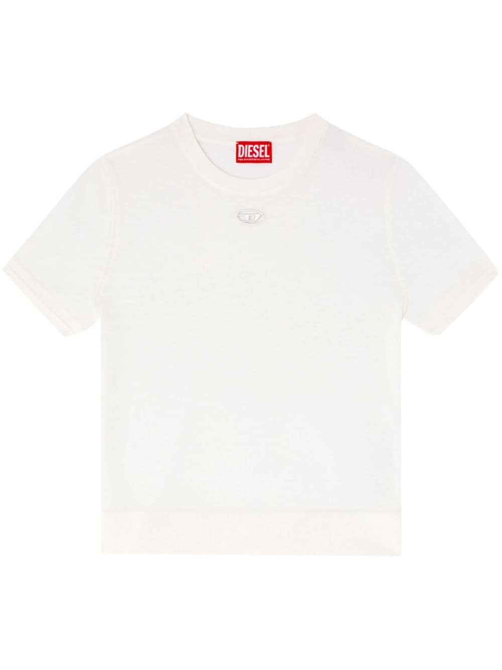 M-Aline knitted top Highlights - White - Wool - Fine knit - Ribbed trim - Crew neck - Embroidered logo - Cut-out detailing - Short sleeves Imported Composition Wool 100%