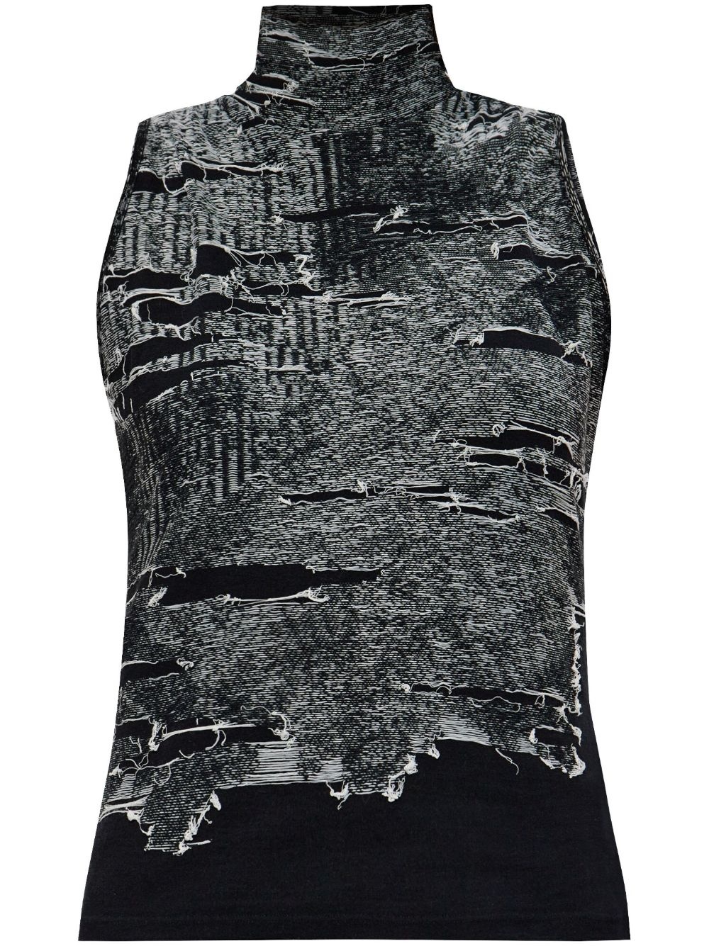 M-Alma top Highlights - Black - High neck - Sleeveless - Distressed finish Made in Italy Composition Cotton 85%, Fabric 15%