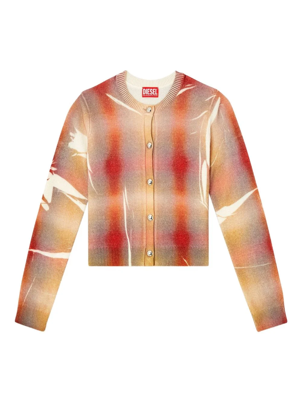 M-Chloty silver button check cardigan Highlights - Orange/multicoloured - Check pattern - Button fastening - Ribbed trim - Round neck - Long sleeves Imported Composition Wool 100% Washing instructions Hand Wash