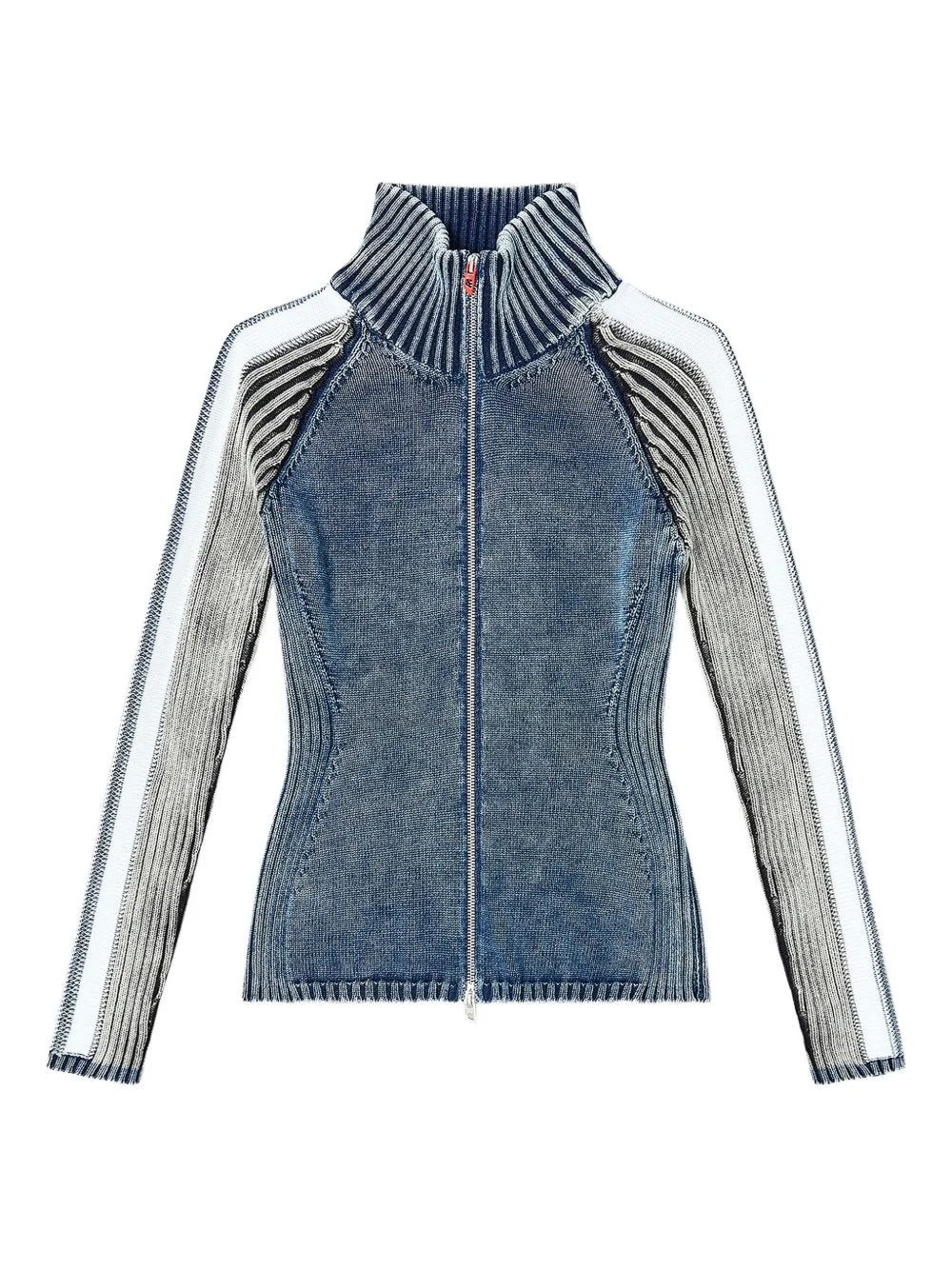 M-Estrella striped high-neck jacket Highlights - Blue - Striped sleeves - High neck - Zip fastening - Logo zip pull Made in Italy Composition Cotton 100% Washing instructions Read Manufacturer Guidelines