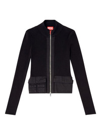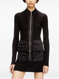 M-Melissa ribbed zip-front top Highlights - Black - Ribbed knit - Zip fastening - Mock neck - Long sleeves - Utility pockets Imported Composition Cotton 100% Washing instructions Hand Wash