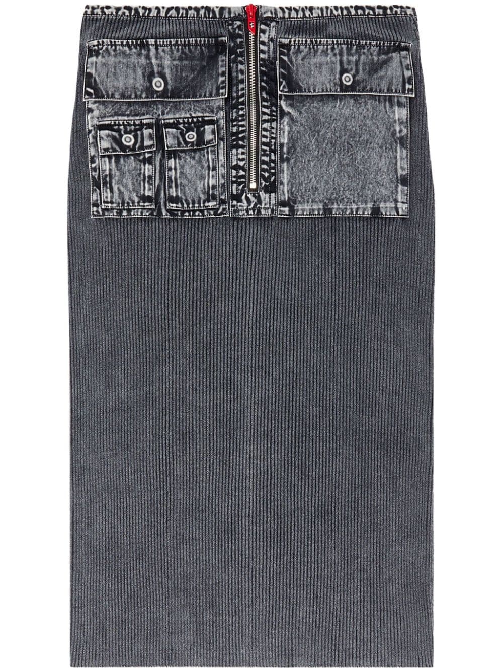 M-Meryn midi skirt Highlights - Medium grey - Cotton - Ribbed knit - Front zip fastening - Mid-rise - Denim panelling - Multiple cargo pockets - Pencil silhouette - Straight hem - Mid-length Imported Composition Cotton 100%