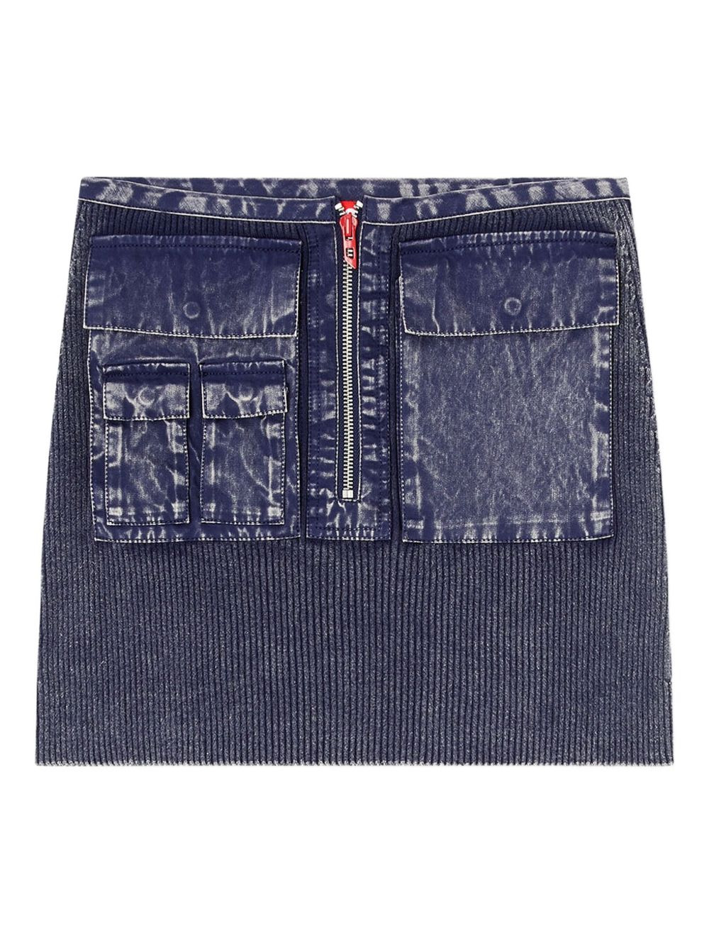 M-Meryn zip-front pocket mini skirt Highlights - Dark-blue - Ribbed texture - Zip fastening - Multiple pockets - Wash effect - Cotton Imported Composition Organic Cotton 100% Washing instructions Read Manufacturer Guidelines