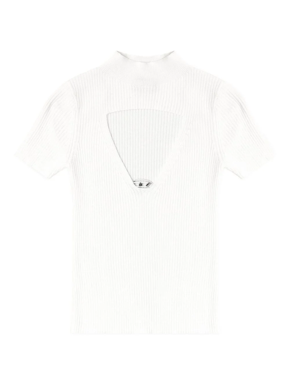 M-Olive T-shirt Highlights - White - Ribbed knit - High neck - Cut-out detailing - Oval d logo plaque - Short sleeves Made in Italy Composition Wool 100% Washing instructions Read Manufacturer Guidelines