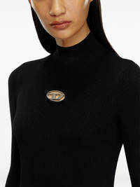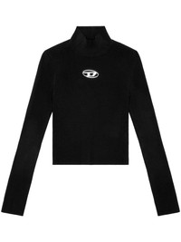 M-Valari-Tn top Highlights - Black - Ribbed knit - Applique logo - High neck - Long sleeves - Straight hem Imported Composition Viscose 83%, Polyester 17%