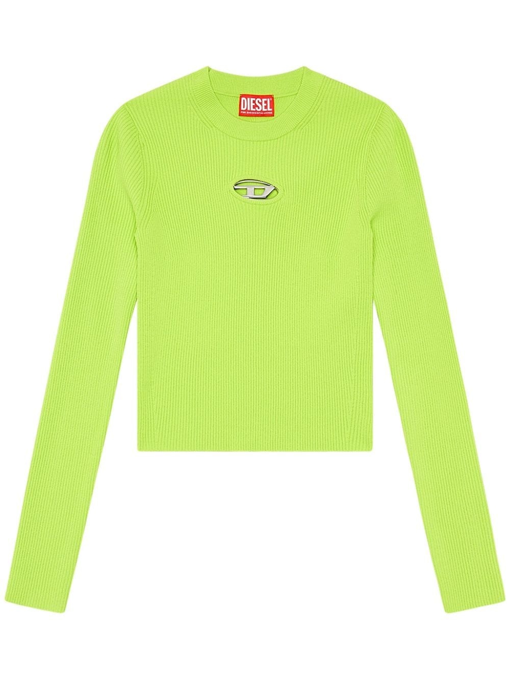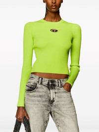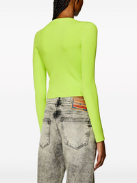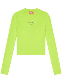 M-Valary logo-plaque top This M-Valary top by Diesel is adorned with the iconic Oval D logo plaque, incorporating a small cut-out on the ribbed piece. It boasts a close-fitting silhouette and comes in vibrant green. Highlights - Bright green - Ribbed knit - Silver-tone logo plaque - Cut-out detailing - Crew neck - Long sleeves - Straight hem Imported Composition Viscose 83%, Polyester 17% Washing instructions Read Manufacturer Guidelines
