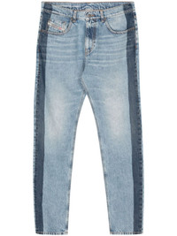 mid-rise slim-fit jeans Highlights - Light blue - Cotton - Denim - Logo patch to the front and to the rear - Embroidered monogram to the rear - Contrasting side panel detail - Whiskering at the thighs - Belt loops at the waist - Classic five-pocket design - Slim cut - Button and concealed zip fly fastening Imported Composition Cotton 100% Washing instructions Machine Wash