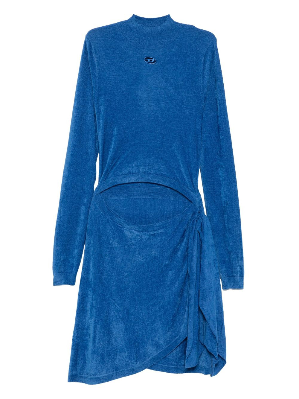 mock-neck tie-front dress Highlights - Blue - Mock neck - Cut-out detail - Tie-front - Long sleeves Imported Composition Polyamide 55%, Viscose 45% SIZE & FIT Model measurements Height 5 ft 10 in(1.78 m) Bust/Chest 33.46 in(85 cm) Hips 36.22 in(92 cm) Waist 23.22 in(59 cm) Washing instructions Hand Wash