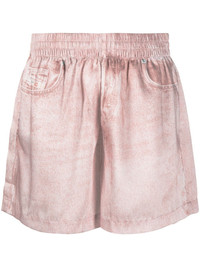 monogram-print shorts light pink monogram print logo patch to the side elasticated waistband side stripe detailing two side slit pockets Imported Composition Polyester 100% Washing instructions Machine Wash