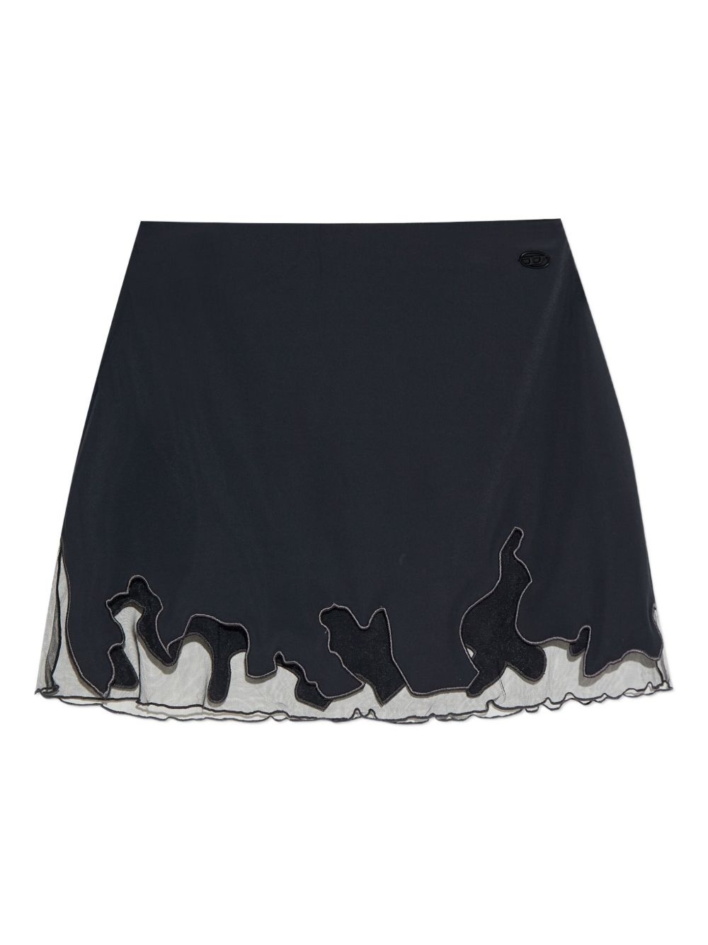 O-Lane-R1 tulle insert mini skirt Highlights - Black - Tulle-insert hem - Drawstring embroidery detail - Elastic waistband - Metal oval d at the waist Imported Composition Polyamide 77%, Elastane 23% Washing instructions Read Manufacturer Guidelines