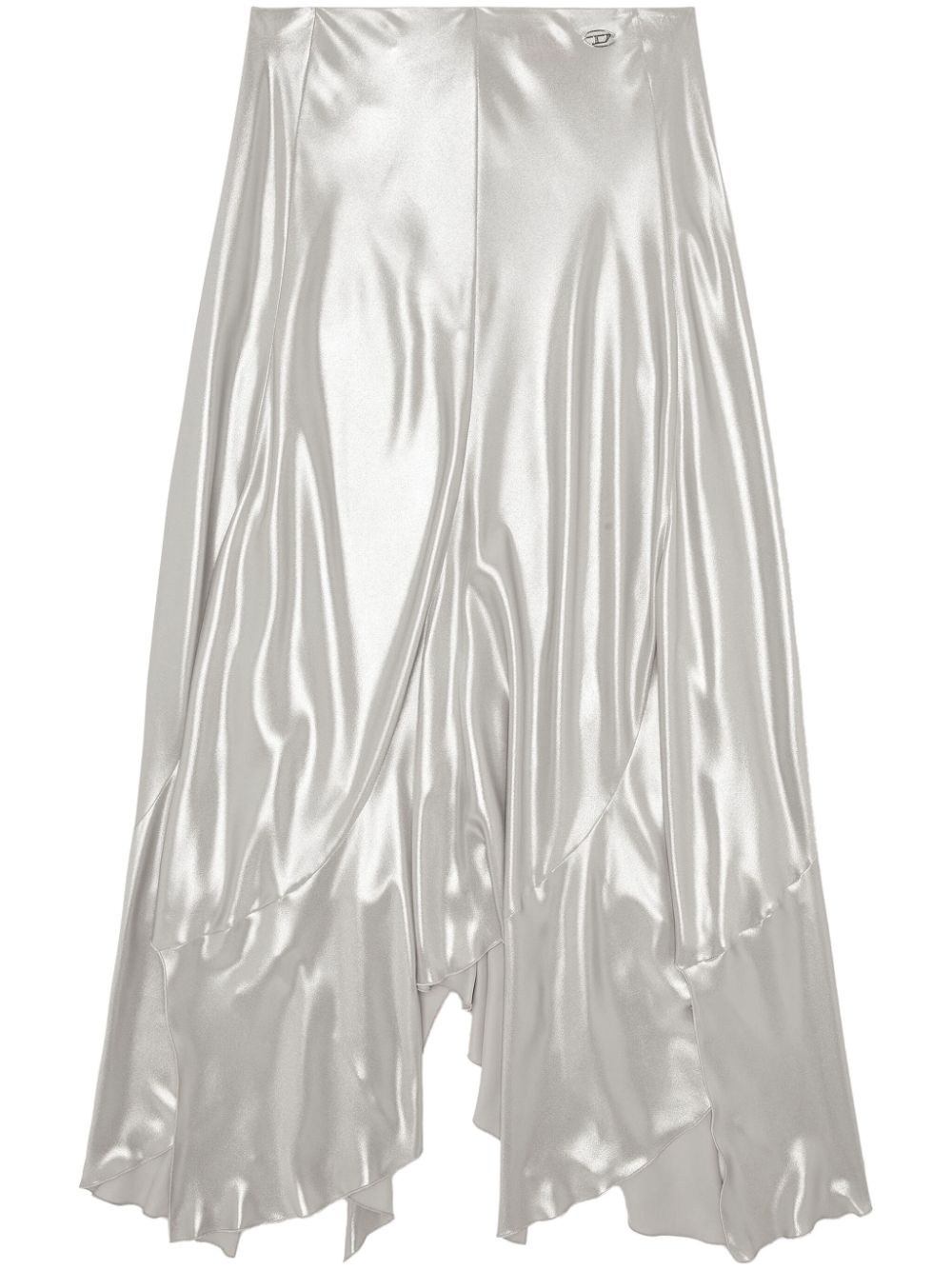O-Namit maxi skirt Highlights - Silver - Stretch-design - Metallic finish - Logo plaque - Low-rise - Rear zip fastening - Panelled design - Handkerchief hem Made in Italy Composition Polyester 100%