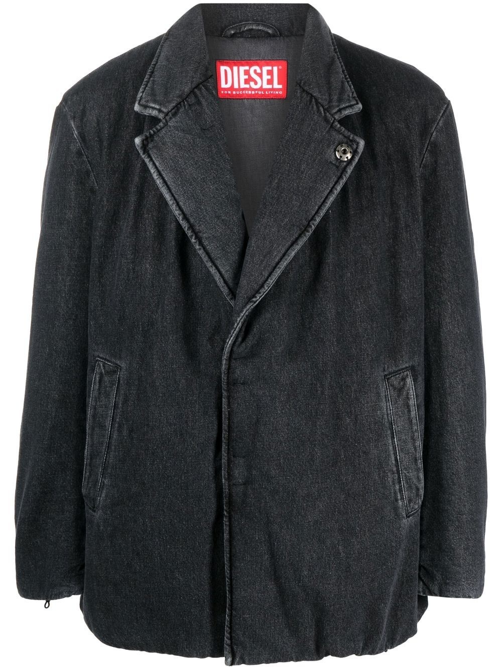 oversize denim jacket Highlights - Grey - Cotton-hemp blend - Dark wash - Oversize frame - Wide notch lapels - Concealed front fastening - Slip pockets to the sides - Long sleeves Made in Italy Composition Cotton 80%, Hemp 20% SIZE & FIT Model measurements Height 6 ft 1 in(1.85 m) Bust/Chest 37.79 in(96 cm) Hips 37.4 in(95 cm) Waist 30.7 in(78 cm) Washing instructions Machine Wash