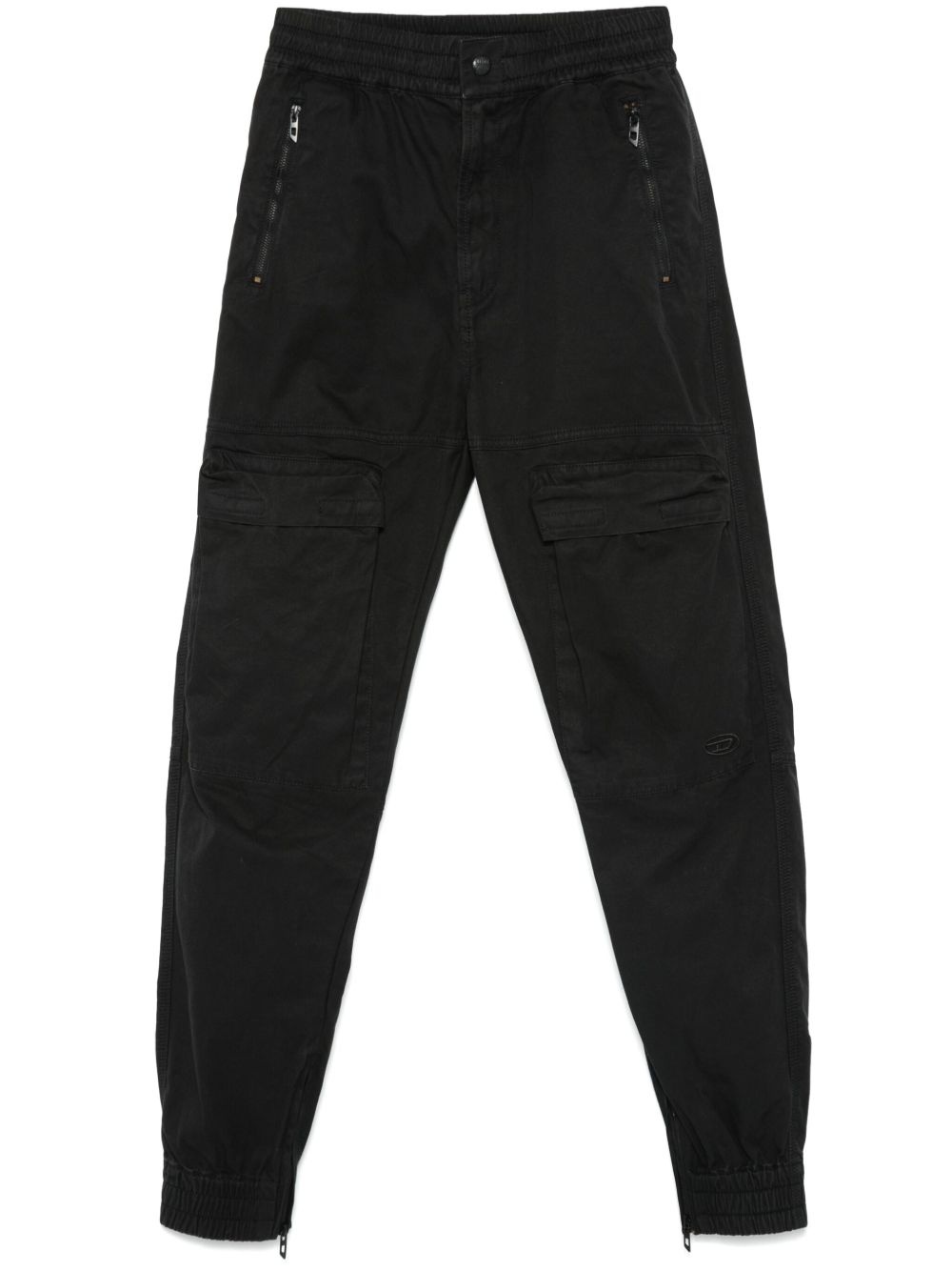 P-Ride trousers Highlights - Black - Front button and zip fastening - Elasticated waistband - Two side zip-fastening pockets - Two front cargo pockets Imported Composition Cotton 100% SIZE & FIT Model measurements Height 5 ft 11 in(1.8 m) Bust/Chest 32.67 in(83 cm) Hips 36.22 in(92 cm) Waist 24.4 in(62 cm) FittingInformation Designed for a relaxed tapered cut, these trousers allow for a close fit at the waist and offer a loose fit at the thighs, with a closer fit toward the ankles Adjust this piece’s waistband to your preference using the drawstring Made from a midweight non-stretch fabric Washing instructions Machine Wash