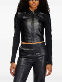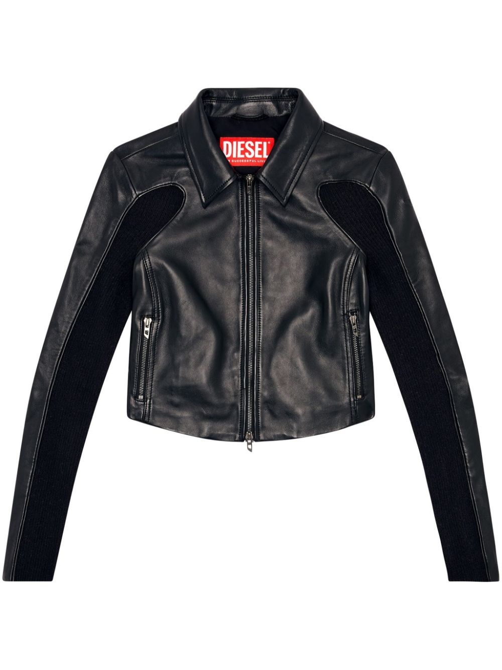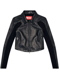 panelled leather jacket Highlights - Black - Lambskin - Panelled design - Classic collar - Front two-way zip fastening - Two side zip-fastening pockets - Long sleeves - Straight hem - Cropped Made in Italy Composition Lambskin 100%