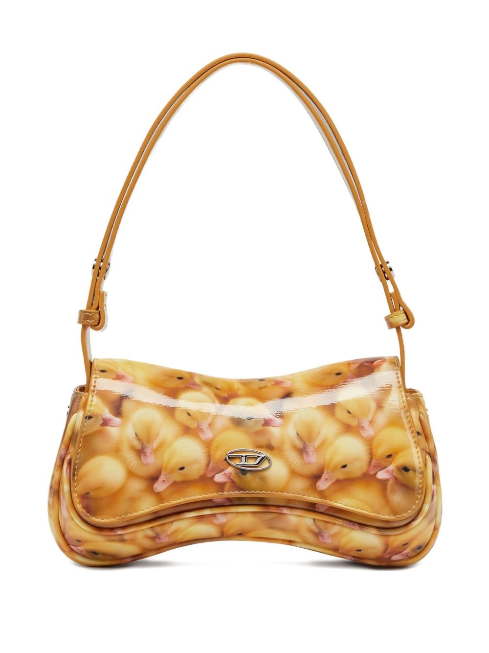 Play clutch bag Highlights - Amber yellow - Foldover top with magnetic fastening - Single shoulder strap - Internal zip-fastening pocket - Abstract pattern print Imported Composition Outer: Polyurethane 100% SIZE & FIT Measurement DEPTH 2.55 in(6.5 cm) HEIGHT 5.11 in(13 cm) WIDTH 10.23 in(26 cm)