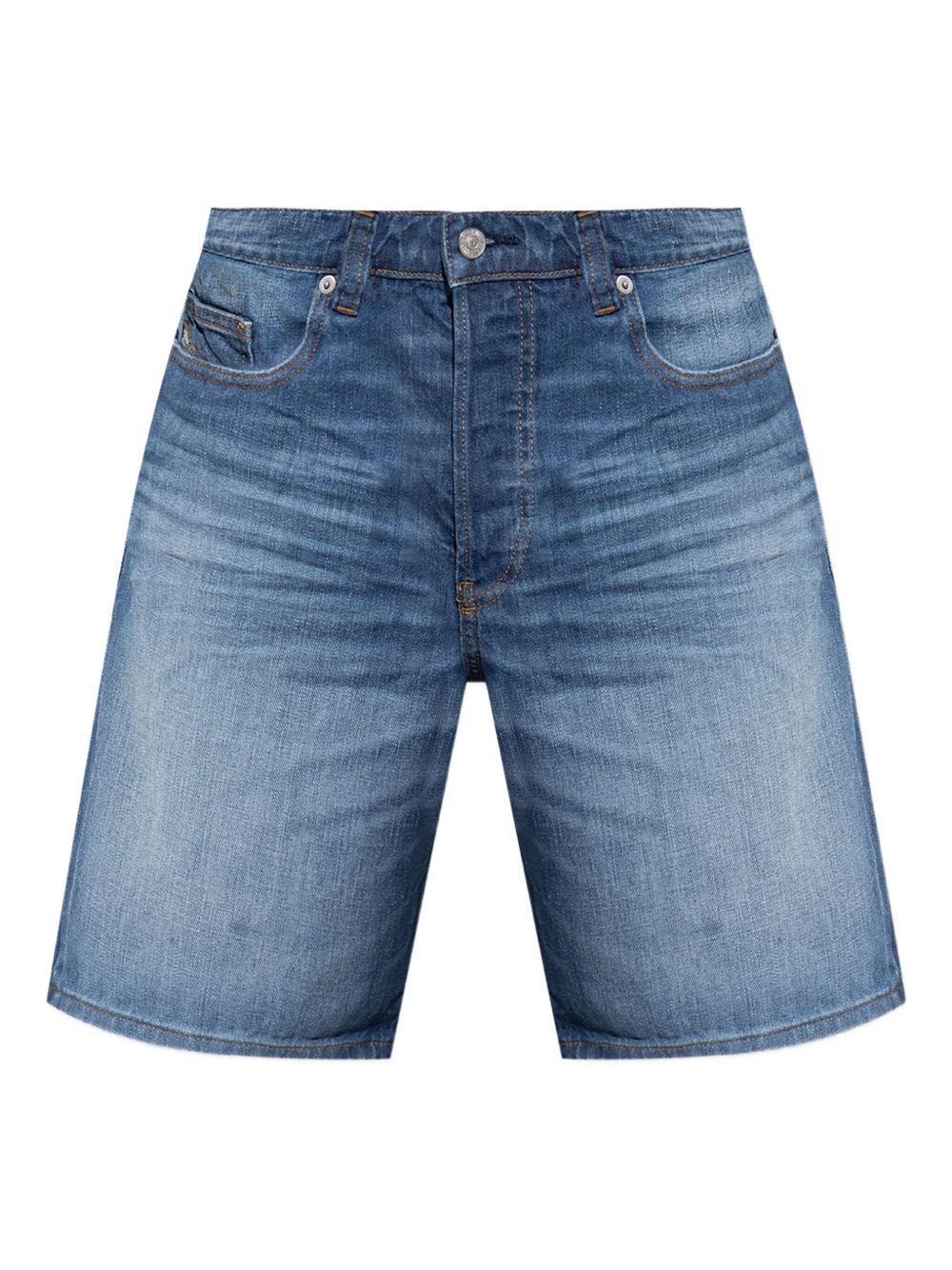 Regular denim shorts Highlights - Blue - Concealed fly and button fastening - Belt loops - Classic five pockets - Whiskering effect at the thighs Imported Composition Cotton 100% Washing instructions Machine Wash