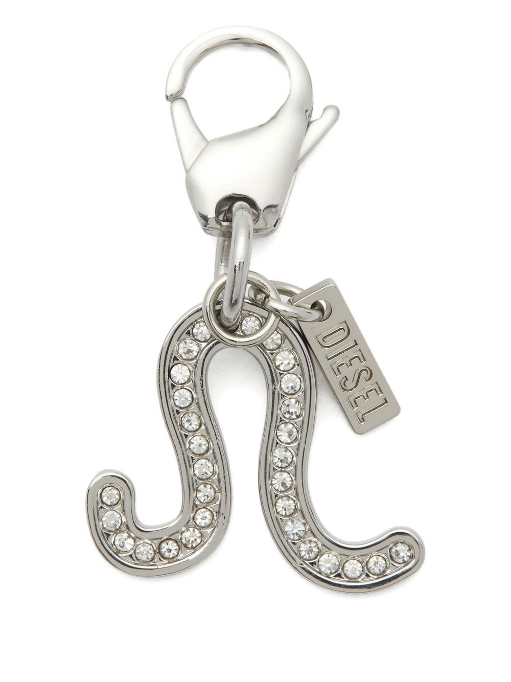 rhinestone charm keyring Highlights - Silver - Lobster clasp fastening - Rhinestone embellishment - Charm - Engraved plaque Imported Composition Zinc 50%, Steel 40%, Iron 10%