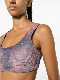 rhinestone-embellished cropped denim top Highlights - Powder pink/blue-grey - Cotton blend - Washed denim - Rhinestone embellishment - Bustier-style neckline - Scoop neck - Sleeveless - Racerback - Cropped Imported Composition Cotton 85%, Polyester 13%, Elastane 2% SIZE & FIT Model measurements Height 5 ft 9 in(1.75 m) Bust/Chest 31.88 in(81 cm) Hips 34.64 in(88 cm) Waist 24.4 in(62 cm) FittingInformation Designed for a close fit throughout Constructed from stretch denim, this piece offers a stretch fit with durability This piece fits true to size – take your usual size Washing instructions Hand Wash