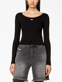 T-Ballet-D long-sleeve T-shirt Highlights - Black - Stretch-cotton - Fine ribbed - Logo patch at the chest - Scoop neck - Long sleeves - Straight hem Imported Composition Cotton 94%, Elastane 6% SIZE & FIT Measurement BUST 27 in(68.6 cm) Washing instructions Machine Wash