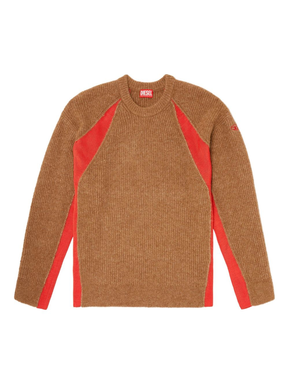 ribbed-panel sweater Highlights - Brown - Ribbed knit - Red panelling - Crew neck - Long sleeves - Straight hem Imported Composition Alpaca 65%, Polyimide 33%, Elastane 2% Washing instructions Read Manufacturer Guidelines