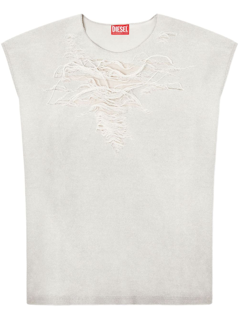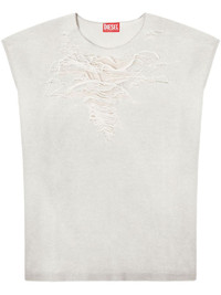 ripped-detailing T-shirt Highlights - Light grey - Round neck - Short sleeves - Straight hem Imported Composition Outer: Cotton 64%, Polyester 34%, Elastane 2% Lining: Polyester 98%, Elastane 2% SIZE & FIT Measurement CHEST 44.01 in(111.8 cm) LENGTH 27.51 in(69.9 cm) Shoulder Width 20.51 in(52.1 cm)