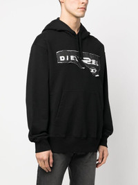 ripped logo print hoodie black cotton graphic print to the rear logo print to the front front pouch pocket drawstring hood long sleeves ribbed cuffs ribbed hem Imported Composition Cotton 100% SIZE & FIT Model measurements Height 6 ft 1 in(1.86 m) Bust/Chest 37.4 in(95 cm) Hips 34.64 in(88 cm) Waist 29.13 in(74 cm) FittingInformation This piece fits true to size. We recommend you get your regular size Cut for a loose fit Made with a mid-weight fabric Washing instructions Hand Wash