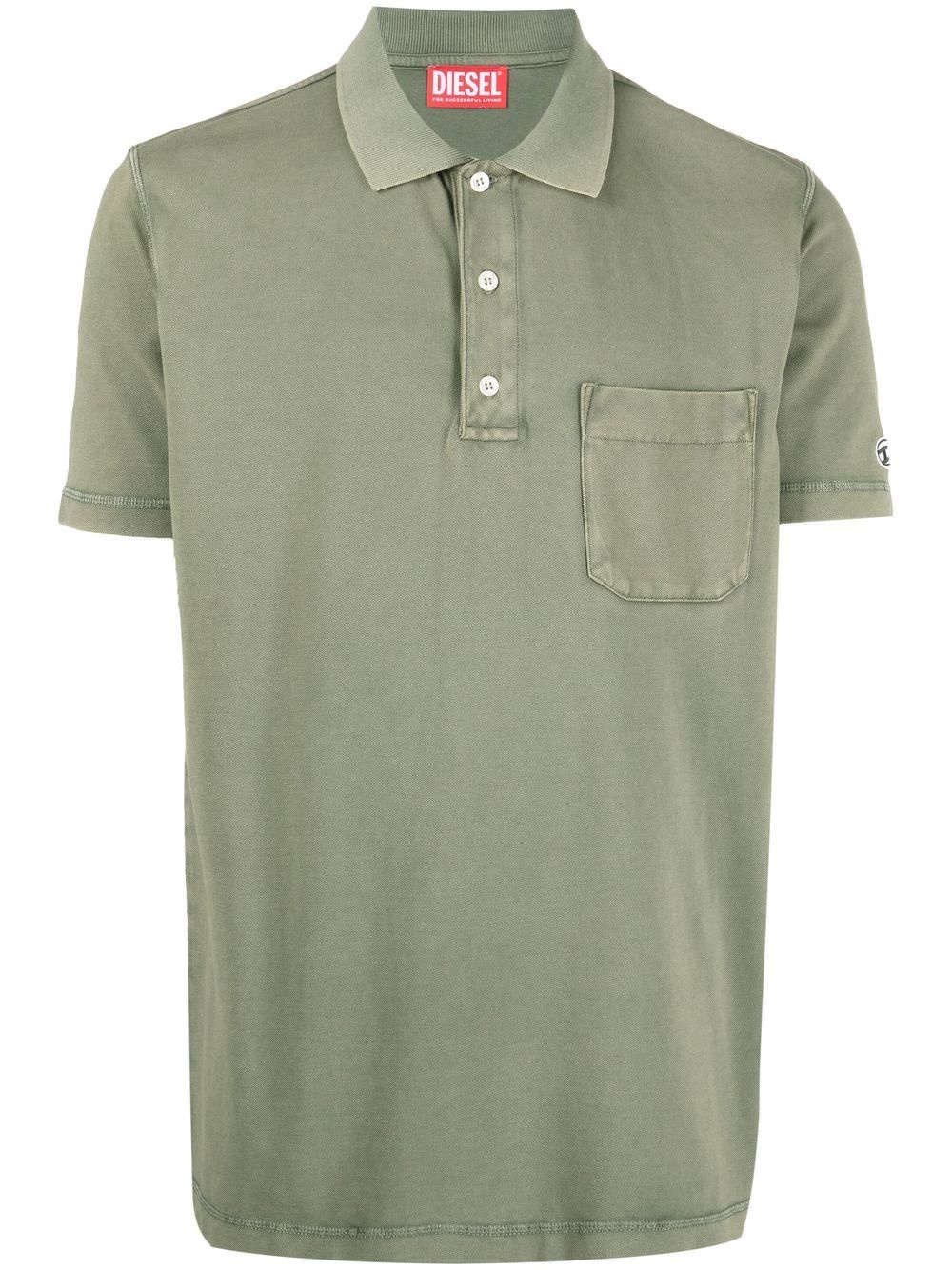 short-sleeved cotton polo shirt short-sleeved cotton polo shirt from DIESEL featuring khaki, cotton, jersey knit, polo collar, front button placket, short sleeves, chest patch pocket and straight hem. Imported Composition Cotton 100% SIZE & FIT Model measurements Height 5 ft 10 in(1.78 m) Bust/Chest 31.49 in(80 cm) Hips 37 in(94 cm) Waist 23.62 in(60 cm)