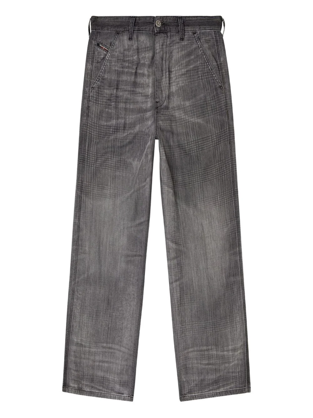 slant pockets straight jeans Highlights - Grey - Prince of wales pattern - Button fly - Slant pockets - Ironed crease - Tonal contrasts Made in Italy Composition Cotton 50%, Lyocell 40%, Modal 10%